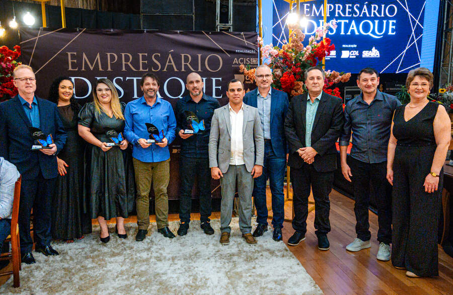 A cerimônia de escolha do Empresário do Ano foi organizada pela ACIS, CDL e Prefeitura de Seara, reconhecendo personalidades que se destacaram em diferentes setores da economia local.